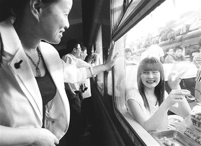 5月13日,46名来自地震灾区四川绵阳平武县的学生在九江庐山车站与江西九江市晨光中学的老师泪别。
