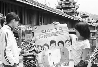 湖南省怀化市公安局针对农村存在大量留守儿童,农村禁毒宣传存有漏洞的情况,将留守儿童组织起来,走街串巷,宣传禁毒知识。不仅帮助留守儿童提高了防范毒品的意识,也有力促进了农村禁毒宣传工作。图为在校中小学生参加农村禁毒宣传活动的情形。本报通讯员陆安权摄