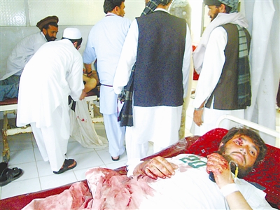 5月14日,在阿富汗东部霍斯特省萨巴里地区,一名受伤者在当地医院接受治疗。