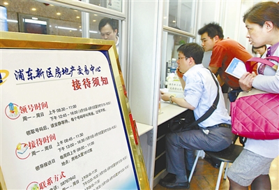 5月9日,市民正在上海浦东房地产交易中心咨询房产税政策。