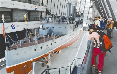 中山舰在1938年10月武汉保卫战斗中被日军击沉于今天的武汉市江夏区金口镇长江水域。1997年1月28日,沉睡59年的中山舰被打捞出水。本报记者 许之丰 摄