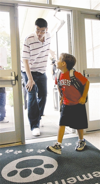 日前,姚明出席美国休斯敦一所小学的校园活动,专心回答小学生提问。