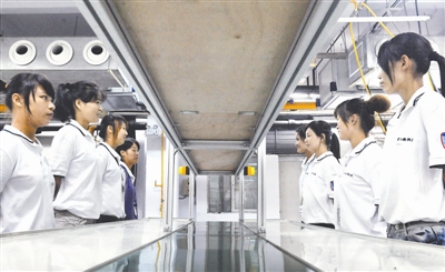 富士康郑州公司在河南农村招收的一批员工在生产车间准备上岗。