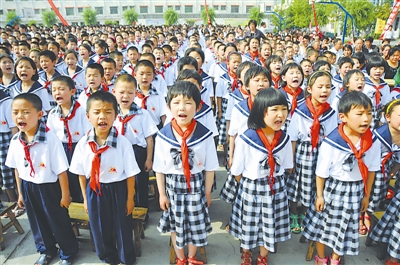 5月18日,在河南省社旗县永兴进城务工农民子弟寄宿制学校,千余名学生在齐声吟诵国学入门经典《弟子规》。当日,该校举办“传统文化进校园,千人诵读《弟子规》”活动,1300多名学生以声情并茂、抑扬顿挫的吟诵,使国学精髓得到了传承和弘扬,加强和改进了未成年人思想道德建设。