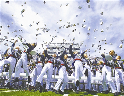 2011年5月21日,在美国最大城市纽约,美国西点军校举行毕业典礼。毕业学员将帽子抛向空中。谢涛 供图