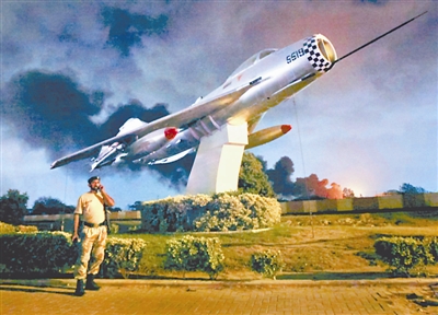 5月22日深夜,巴基斯坦卡拉奇迈赫兰海军航空兵基地遭武装分子袭击,造成包括一架P-3C“猎户座”海上巡逻机在内的多架飞机被毁,至少12人死亡,其中包括至少8名武装分子。图为冒着浓烟的基地。吉平 供图
