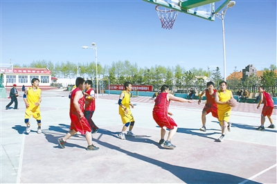 5月24日下午,河北冀中能源张矿集团康保矿职工与康保县一中师生举办篮球友谊赛,以此增强企地关系。 (侯振中 刘树勇)