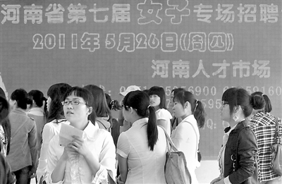 当日,河南省第七届女子专场招聘会在河南人才市场举行。110家用人单位为女性“量身定做”了包括财务、商业、旅游、行政管理等2600多个工作岗位。 新华社记者 王颂 摄
