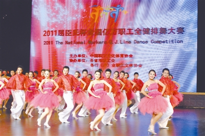 5月24日至27日,2011全国亿万职工全健排舞大赛在北京举行。在比赛现场,有着和刘玉荣一样感受的参赛者还有很多。来自全国各省、市、自治区总工会及各行(产)业职工文体协会的26支职工代表队,通过全健排舞这一形式新颖的健身舞蹈舞动健康,传递快乐。全健排舞,在不断丰富职工群众业余文化生活的同时,也在推动广大职工开展全民健身中发挥着越来越重要的作用。