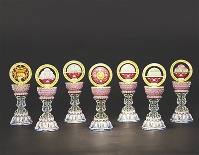 图为拍出3852.5万元成交纪录的盂兰盆供器(七件)。