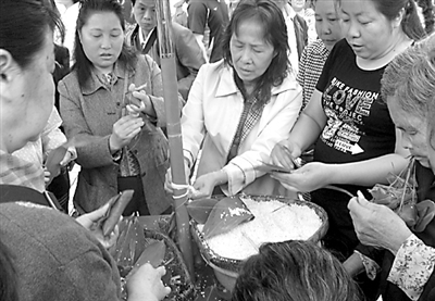 粽叶飘香迎端午,传统佳节民俗乐。端午佳节来临之际,重庆能源集团大足洗选厂工会请来20多名矿嫂举办包粽子大赛,填糯米、放花生、裹粽子、扎线……一字排开的长桌成了比赛的擂台。活动结束后,厂工会将包好的100多斤粽子蒸煮后送到一线矿工们手中。 月闻 摄