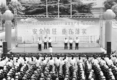 6月7日,安徽淮北矿业集团公司2011年“安全生产月”活动启动。近年来,淮北矿业创新“安全生产月”活动载体,通过形式多样、喜闻乐见的安全活动,宣传安全生产方针政策,营造“关注安全、关爱生命”的浓厚氛围,促进了矿区安全形势持续稳定发展。 韩亚春 韩荣 摄