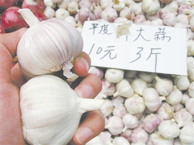 6月6日,青岛市场上的大蒜卖到了10元3斤。
