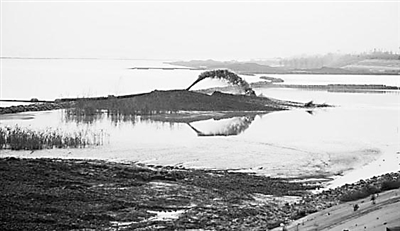 5月28日,清淤船正在安徽省巢湖市居巢区中垾镇镜巢湖沿岸吹填“人造湿地”。据了解,安徽巢湖清淤工程是国务院“三河、三湖”水污染治理重点国债项目之一,是巢湖污染治理及综合开发重要生态项目之一。目前,27公里的“人造湿地”初现雏形,已吹填完成的“湿地”上已栽上了芦苇、柳树、水生植物和一些挺水作物。