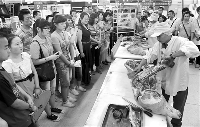 6月8日,西安沃尔玛超市的员工正在进行技能大比武。当日,由西安市碑林区总工会与沃尔玛超市联合开展的“员工文化推广活动——员工技能大比武”在东二环店举行,来自西安市沃尔玛6店的36名员工参加了共计6个项目的比赛,以此提高员工技能,提升服务水平。袁景智 摄