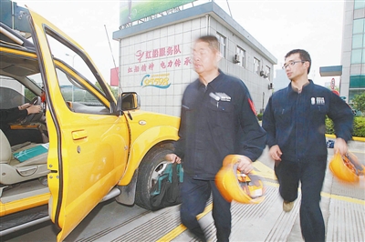 6月10日上午10点10分,浙江嘉兴南湖供电分局“红船服务队”接到热线求助,一居民家里停电需要电力工人过去检修,从接到电话到上车出发,两名队员用时不到2分钟,并将按规定在半小时内达到。“红船服务队”成立于2007年11月,经过层层选拔,10名具有较高职业素养和业务技能的员工率先成为首批队员,现在他们已将这一品牌扩展到嘉兴市各个供电分局,队员扩展至2000多人。本报记者 杨登峰摄