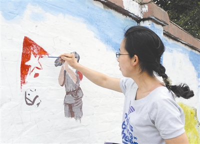 在长春市绿园区锦西路,百余米长的墙体上画满了人们熟悉的革命英雄人物故事,附近街道的老百姓都称这面墙为“红墙”。据悉,“红墙”原本是绿园区待改造的一面旧墙,街道互助社区请来了绘画爱好者,在墙体上画一些革命英雄故事,庆祝建党90周年。新华社记者 林宏 摄