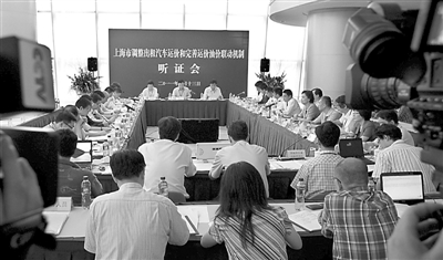 6月13日,媒体记者在听证会现场采访。当日,上海有关部门就调整出租汽车运价、完善运价油价联动机制举行听证会。24名代表就调起步价、调单价、增设燃油附加费等方案提出了意见和建议。上海市发改委相关负责人表示,不管最后采用哪个方案,此次运价调整所增加的营运收入全部归驾驶员。 新华社记者 凡军摄