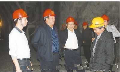 董事长、党委书记杨有诗(左二)在向莆铁路戴云山隧道掌子面检查指导工作