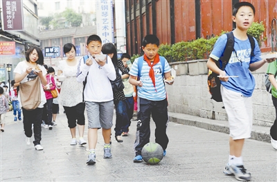 在贵州省遵义市的街头上经常可以看到这样一景,很多孩子端着早餐饭盒走在上学路上。不少孩子反映,课业负担太重,晚上很晚睡觉,早晨想多睡一会儿,因此没有时间在家吃早饭,只好随意买点东西边走边吃,非常不利于身体健康。“要是功课少点,上学时间晚点就好了,我就可以不慌不忙地在家吃早饭了。”一位学生如是说。