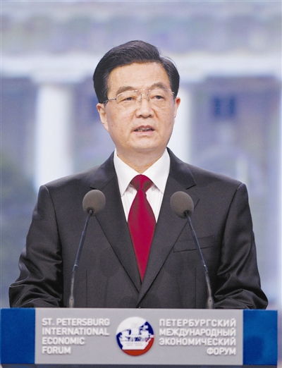 胡锦涛出席圣彼得堡国际经济论坛开幕式并发表重要演讲