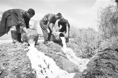 因企业拒收牛奶,自6月6日以来,长春市新立城镇大南屯村的“牛奶河沟”不断扩大。全村9家奶牛养殖户,共计120多头奶牛,在最近的几天里每天要倒掉近1500斤牛奶,到如今已经倒掉了牛奶上万斤。