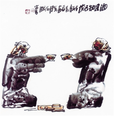 酒逢知己 (国画)杨晓阳