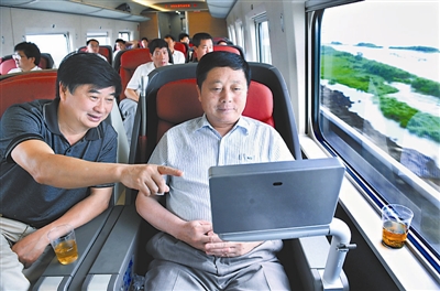 6月19日,乘客在旅程中观看座位上安装的小屏幕电视。当日上午9时5分,伴随着悠扬的汽笛声,京沪高铁从安徽滁州定远站出发,南下驶向上海虹桥站。行驶过程中,当列车时速为300公里时,其车厢出乎意料的稳定,旅客没有丝毫颠簸的感觉。 王家国 摄