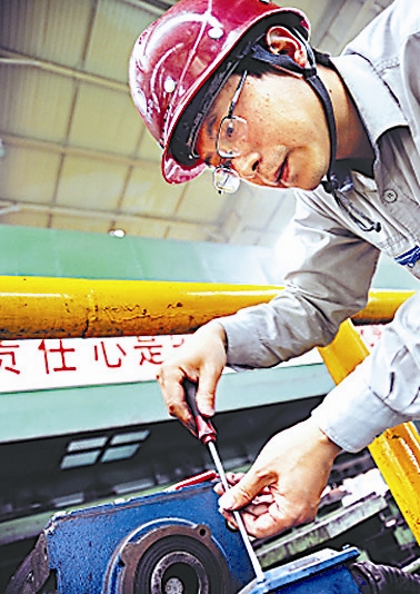 天天和这些洋设备摸爬滚打,李刚不仅摸清了机器的“脾气秉性”,而且还能熟练地驾驭它们。从处理信号不灵、开关故障等硬件“闪烁”小问题,到解决一台机器的程序运行;从改进某项工艺到优化整条生产线,拧接机、车丝机、无损探伤机等等,几十个类型的设备、几十条生产线的情况他都烂熟于心。