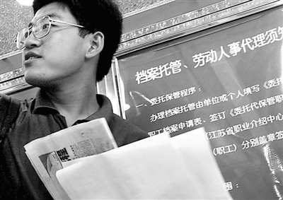 大学毕业生在人才市场办理劳动人事代理和档案托管。(资料图片)