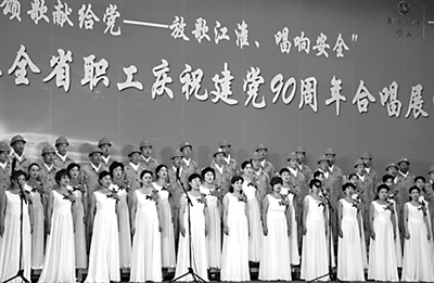 为庆祝中国共产党成立90周年,深入推进企业安全生产活动,6月19日,由安徽省总工会、省安监局、省经信委、省文联和安徽中烟公司联合举办的“颂歌献给党——放歌江淮、唱响安全”全省职工庆祝建党90周年合唱展演活动在合肥举行。来自全省13个产业(行业)的企事业单位合唱团体的1000多名职工参加展演。