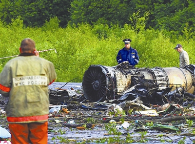 图为在俄客机坠毁地点,警方调查人员正在勘察现场。吉平 供图