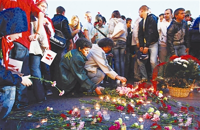 6月22日,在俄罗斯首都莫斯科克里姆林宫外的无名烈士墓前,市民和二战老兵手持蜡烛和鲜花纪念“卫国战争”爆发70周年。1941年6月22日,德国法西斯突然闪击前苏联,前苏联人民开始了艰苦卓绝的卫国战争,直到1945年5月2日柏林战役结束。谢涛 供图