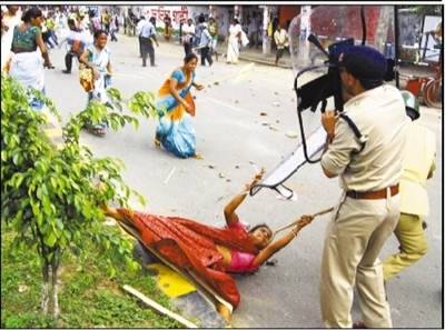 近日,印度政府对定居在古瓦哈提附近的居民进行驱逐,引发民众不满,抗议民众焚烧了一辆公交车。警方使用警棍和催泪弹等武器对抗议民众进行镇压。此次暴力冲突已造成至少3人死亡多人受伤。图为6月22日,警方试图控制局面。吉平 供图