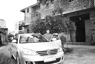富裕起来的村民黄永旺在自家的小汽车前。元华 摄
