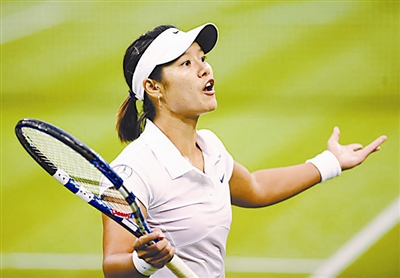 6月23日,李娜在比赛中为失误而懊恼。新华社记者 曾毅 摄
