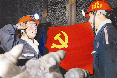 “我志愿加入中国共产党……”6月26日,童亭矿综掘区青年职工桑传伟在党支部书记周明章的带领下,面向党旗庄严宣誓。当日,安徽淮北矿业童亭矿党委举行新党员入党集体宣誓仪式。桑传伟因为参加109巷道综掘会战无法按时升井,区党支部在综掘生产一线为他举行了简朴而又庄重的入党仪式。