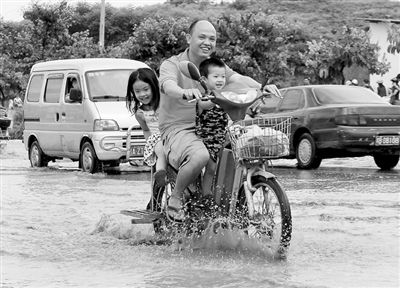 6月25日下午,受台风“海马”及后到的“米雷”影响,广西南宁市部分地区出现大雨到暴雨,城市部分街道出现内涝现象。彭寰/摄