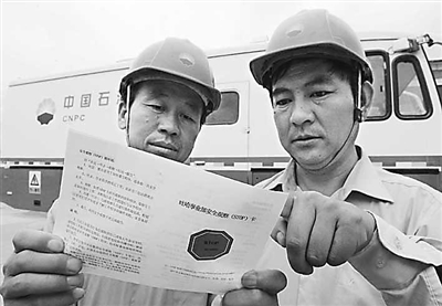 6月20日下午,出车回来的吐哈事业部汽车队驾驶员孙昌锋和赵生宏,在做完车辆回场的例行检查后,对观察到的安全行为和不安全行为进行讨论,填写在STOP卡上。