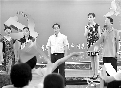 “为什么战旗美如画,英雄的鲜血染红了她 ;为什么大地春常在,英雄的生命开鲜花 。”6月29日,福建省总工会举行庆祝中国共产党成立90周年暨“两优一先”表彰大会,省总机关干部职工用慷慨激昂的歌声,抒发爱国激情,表达了对党和祖国的真诚祝福。