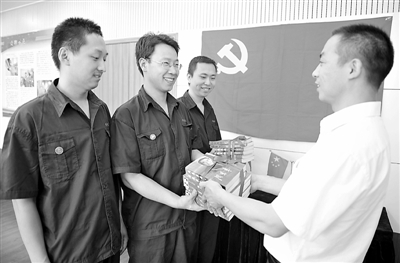 6月28日,冀中能源股份公司邢东矿动力科职工收到了矿党委送来的红色书籍。