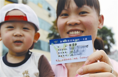 当日,江苏省南通市崇川区新城桥街道为社区外来务工人员代表发放新市民“一卡通”服务卡。卡片上填写外来人员姓名、身份证号码、联系电话等信息。持“一卡通”的外来务工人员可在社区借阅图书杂志、参加社区文娱团体活动、申请就业和技能培训、在本社区幼儿园、小学申办子女入学手续等等。