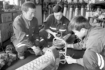 6月下旬开始,河北冀中能源张矿集团康保矿开拓区共产党员王建国(中)和3名工友利用业余时间对全矿报废的30多台锚杆机进行重新拆装, 9台锚杆机经修理重装可以继续使用,而拆下的可利用配件价值也近2万元,共为企业节约资金近15万元。