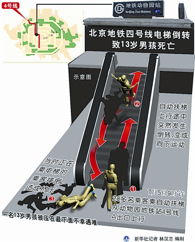 北京发生了又一起公共安全事故,今天上午9点36分,北京地铁4号线动物园站A口上行自动扶梯突然发生故障,正在搭乘电梯的部分乘客出现摔倒情况。截至记者发稿时,这起事故已造成一名男孩死亡、3人重伤,另有27人轻伤,已有9名轻伤者出院。