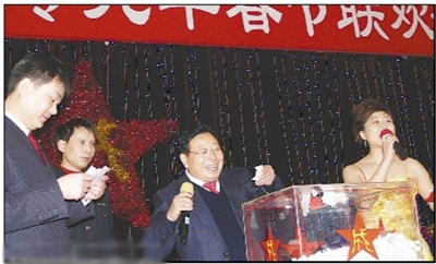 春节联欢会上徐周闻为员工抽奖