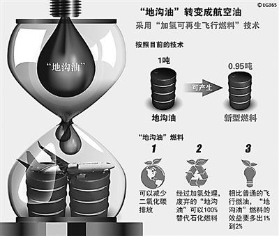 从今年9月开始,荷兰皇家航空公司将实现新的突破,他们要对炒菜用过的油进行加工,为飞机提供燃料。“地沟油”变飞机燃油,成本猛增,但更高效、更绿色。而在我国,日前财政部、国家税务总局联合下发通知,明确了利用废弃动植物油脂生产纯生物柴油免征消费税的适用范围。业内人士分析,这是为了防止“地沟油”流入食品行业,鼓励企业将这些废弃动植物油转化为工业用油。