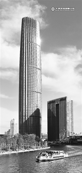 6月23日,淅淅沥沥下着小雨。远远望去,津塔就像一艘靠泊海河的巨型帆船。美国著名的SOM公司把大楼外立面设计成折纸风帆造型,上海华东建筑设计研究院负责结构设计。