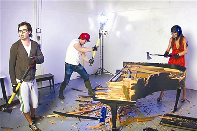 美国富二代的变态生活:高价付费,用摧毁减压!图为一架钢琴被他们砸毁。于涛 供图