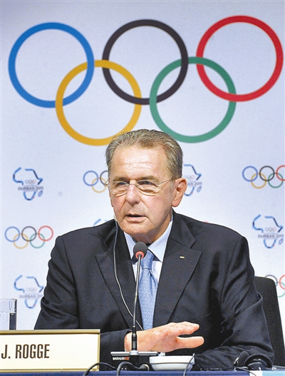 7月4日,国际奥委会主席罗格在新闻发布会上。当日,国际奥委会在南非德班召开执委会大会,确认花式技巧滑雪已获批成为2014年索契冬奥会比赛项目。
