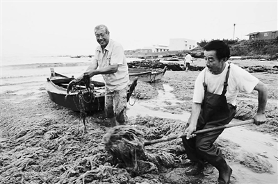 当日,山东青岛浒苔大面积爆发。青岛市相关部门正组织人员和机械24小时不停打捞,确保将浒苔带来的危害降至最低。